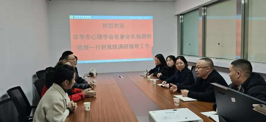 在毕节市妇幼保健院、浙江省人民医院毕节医院、毕节市第四人民医院,杨韶刚、杜海燕与相关负责同志进行了交流,并就医院心理治疗方面进行了专业指导。