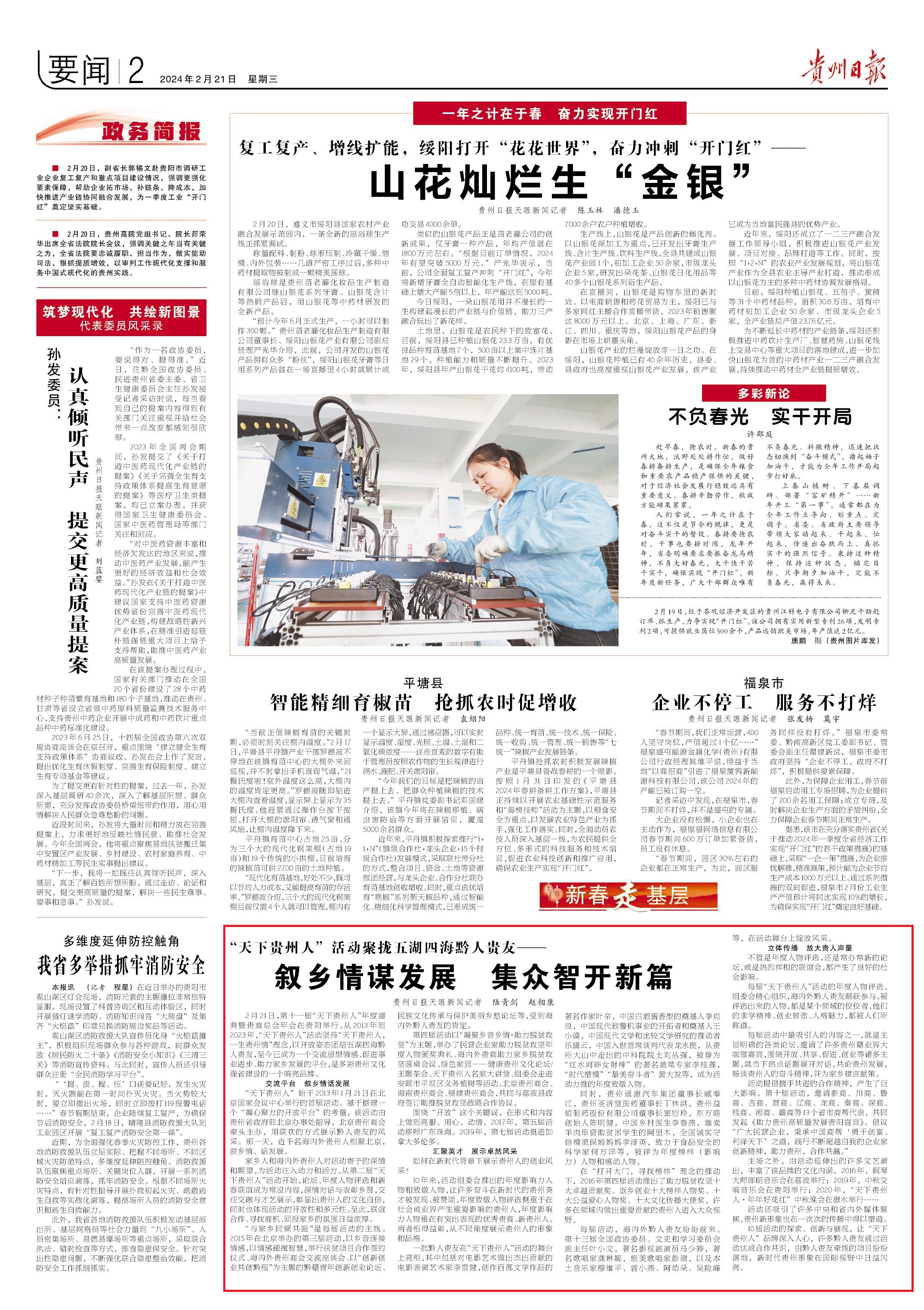 2月21日,第十一届“天下贵州人”年度盛典暨贵商总会年会在贵阳举行。从2013年到2023年,“天下贵州人”活动坚持“天下贵州人,一生贵州情”理念,以开放姿态团结五湖四海黔人贵友,至今已成为一个交流思想情感、促进事业进步、助力家乡发展的平台,是多彩贵州文化强省建设的一个响亮品牌。