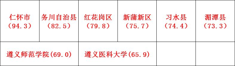 附:进入决赛县(市、区)党委统战部和在遵高校党委统战部名单及预赛平均成绩