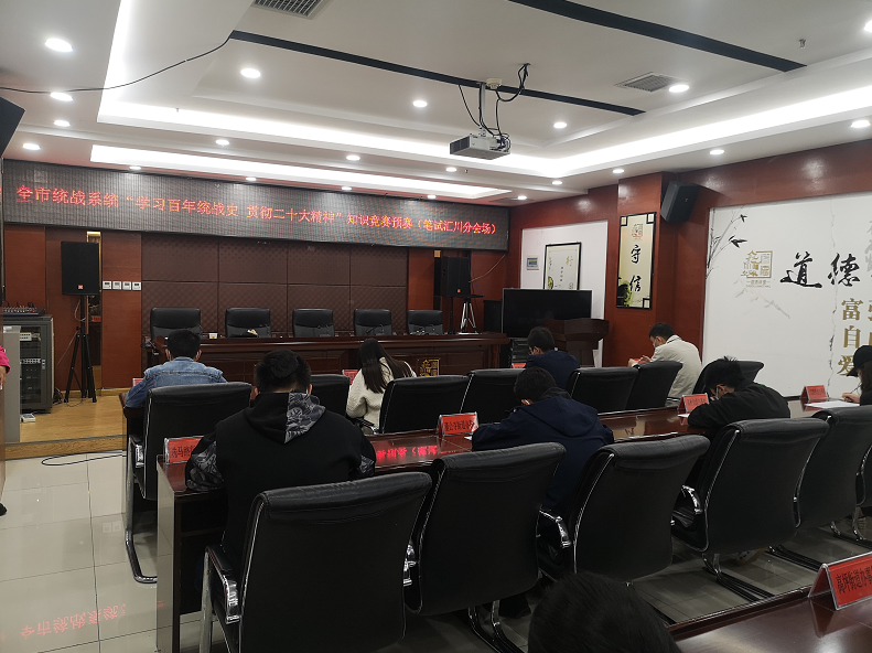 为扎实开展“党的二十大精神大学习大落实”活动,遵义市持续在全市统战系统掀起学习宣传贯彻落实党的二十大精神热潮。近日,全市统战系统组织开展“学习百年统战史·贯彻二十大精神”知识竞赛预赛(笔试)。本次预赛(笔试)由遵义市委统战部统一命题、统一监考、统一制定规则并统一时间开考,目的是进一步扩大学习宣传范围,确保了公平公正公开。全市15个县(市、区)党委统战部、5个在遵高校党委统战部共组织350名统战干部参与,实现了真学真考真用。