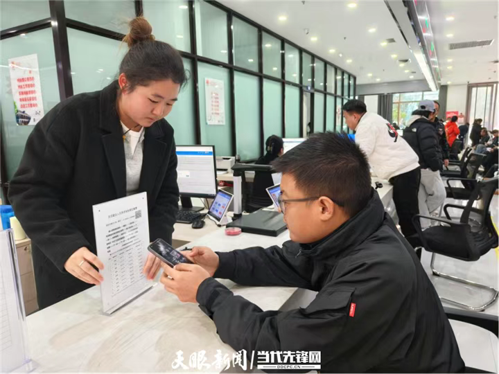 红花岗区“简事快办”窗口工作人员指导群众五分钟内办完业务。贵州日报天眼新闻记者徐春燕摄。