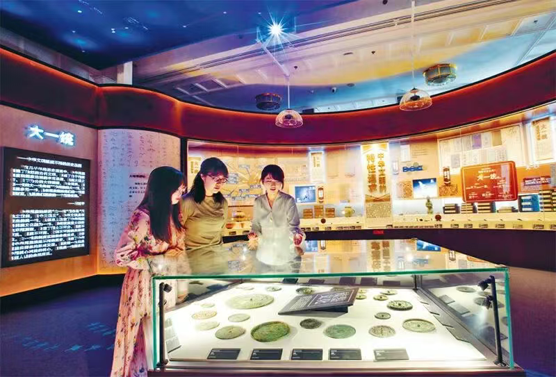 铸牢中华民族共同体意识文物古籍展正在北京民族文化宫展出,2900余件文物古籍及展品让观众近距离感受中华民族共同体形成发展的历史进程,聆听各民族交往交流交融的故事。图为2025年9月24日参观者驻足观看展品的现场照片。刘新武/摄