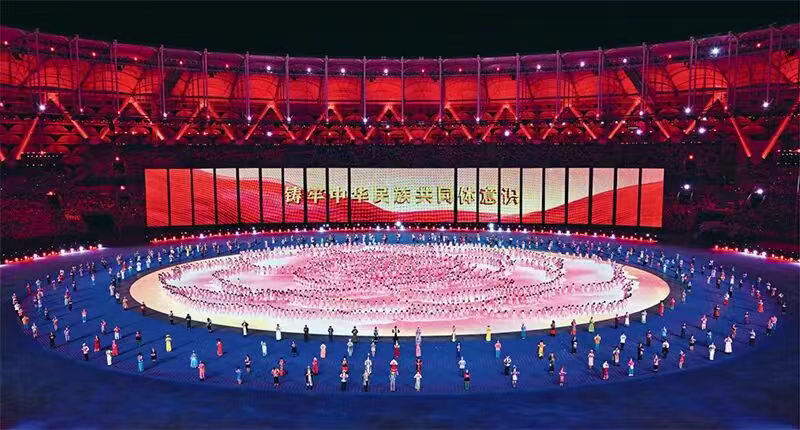 2024年11月22日至30日,第十二届全国少数民族传统体育运动会在海南省三亚市举行。自1953年11月首次举办以来,该运动会已成为我国各民族团结交流的盛会。通过运动会搭建的广阔舞台,铸牢中华民族共同体意识不断深入人心。图为2024年11月22日拍摄的开幕式现场。新华社记者郭程/摄