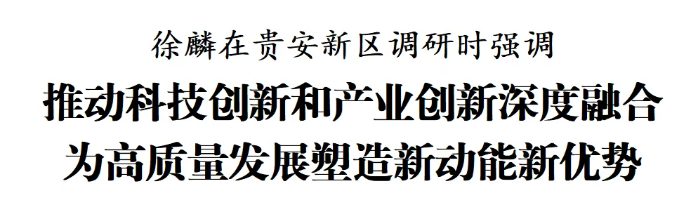 10月13日,省委书记徐麟到贵安新区调研。他强调,要深入学习贯彻习近平总书记关于科技创新的重要论述和在贵州考察时的重要讲话精神,推动科技创新和产业创新深度融合,为高质量发展塑造新动能新优势。省领导胡忠雄、郭强参加。