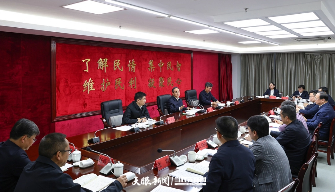 图为徐麟主持召开座谈会,听取省信访局工作情况汇报。