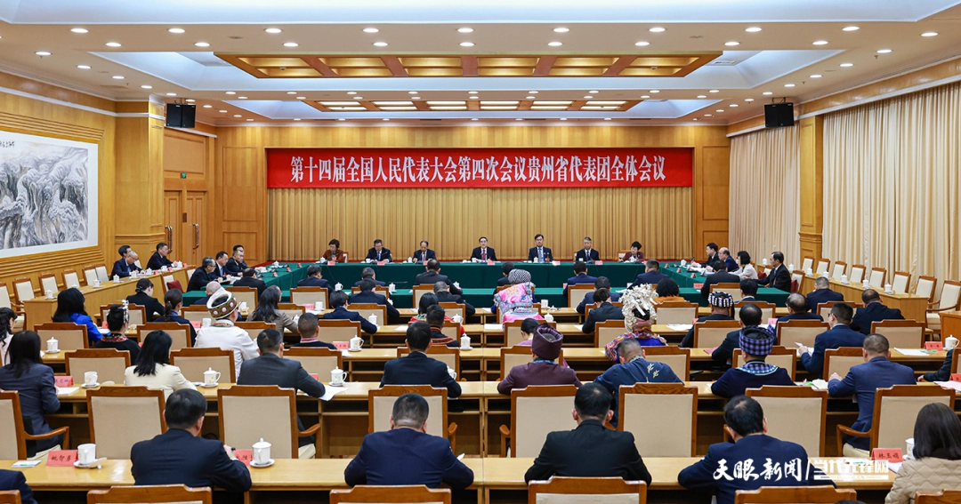 3月3日下午,出席十四届全国人大四次会议的贵州代表团在北京举行组团会议。全国人大代表、省委书记、省人大常委会主任徐麟主持会议。