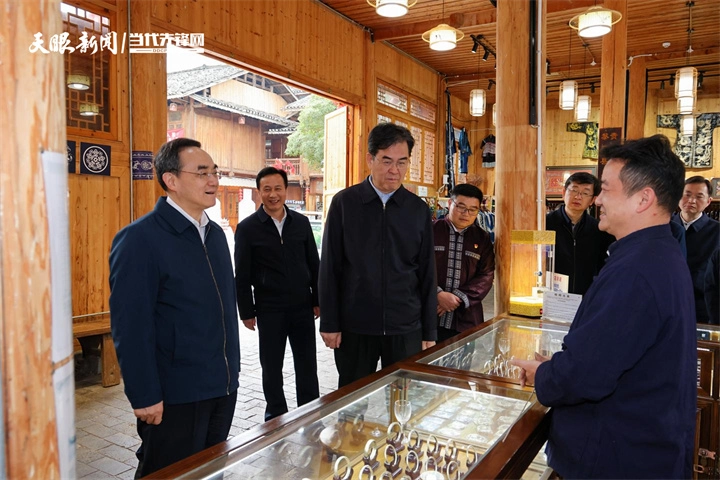 黎平县肇兴侗寨是全国最大的侗族村寨之一。去年3月17日,习近平总书记深入实地考察,亲切看望各族干部群众,带来党中央的关怀厚爱。一年来,肇兴侗寨沉浸在总书记考察带来的温暖、幸福和喜悦之中,处处都能感受到牢记嘱托、感恩奋进的昂扬精神。徐麟、李炳军来到这里,步行察看侗寨风貌,走进沿街商铺、蜡染工坊和群众家中交流,勉励大家铸牢中华民族共同体意识,深入挖掘、充分发挥比较优势,以特色优势单品带动拓展旅游商品市场,进一步打造高品质旅游景区。从江县洛香镇荣新村四联寨也是一个侗族聚居地,徐麟、李炳军来到这里实地了解乡村规划建设情况,叮嘱当地加强传统村落和特色村寨保护,深入推进“两清两改两治理”,建设生态宜居美丽乡村,绵绵用力推进移风易俗、培育文明新风。