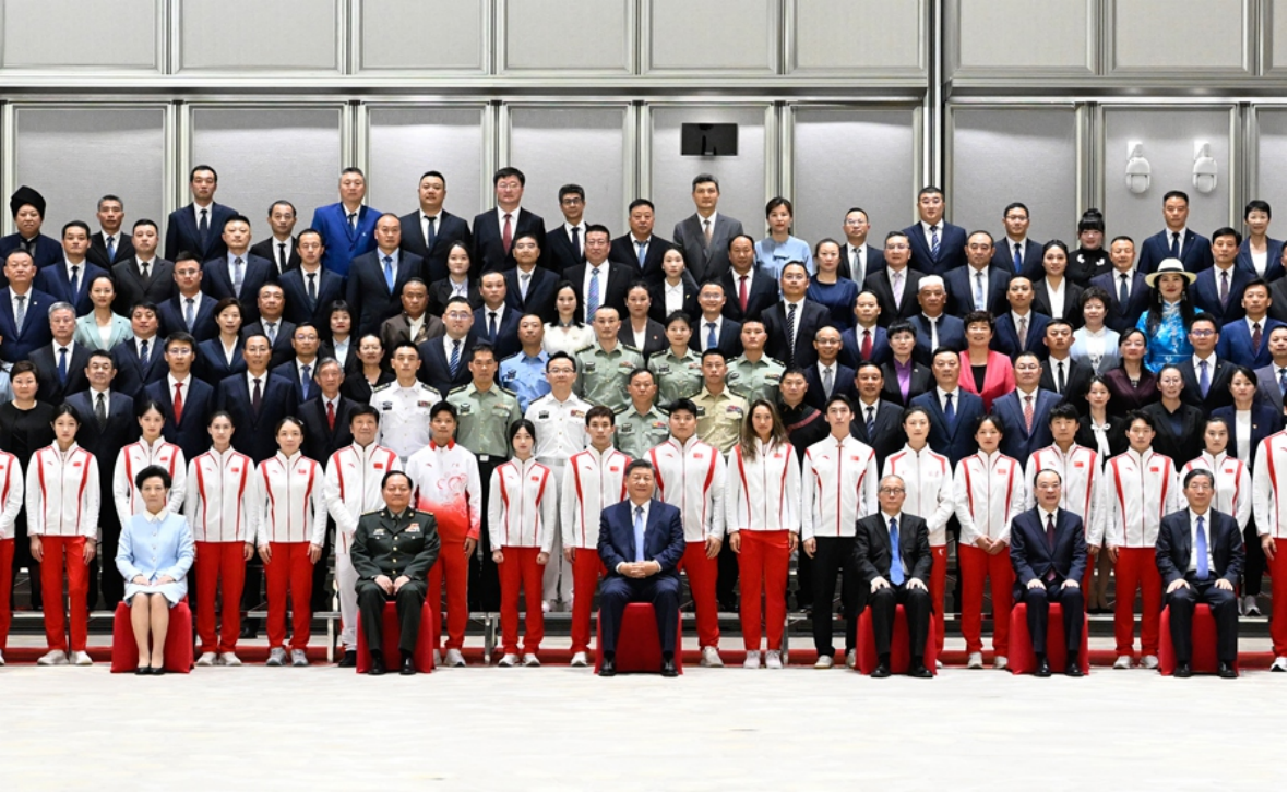 11月9日下午,中共中央总书记、国家主席、中央军委主席习近平在广州亲切接见全国群众体育先进单位、先进个人代表和全国体育系统先进集体、先进个人代表,并同大家合影留念。新华社记者申宏摄