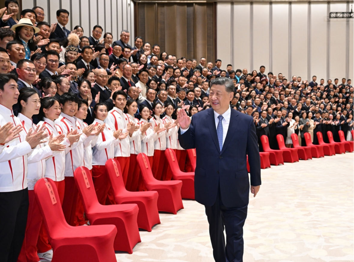 在第十五届全国运动会即将开幕之际,中共中央总书记、国家主席、中央军委主席习近平9日下午在广州亲切接见全国群众体育先进单位、先进个人代表和全国体育系统先进集体、先进个人代表,向他们表示热烈祝贺,勉励他们奋力拼搏、再创佳绩,为建设体育强国作出新贡献。